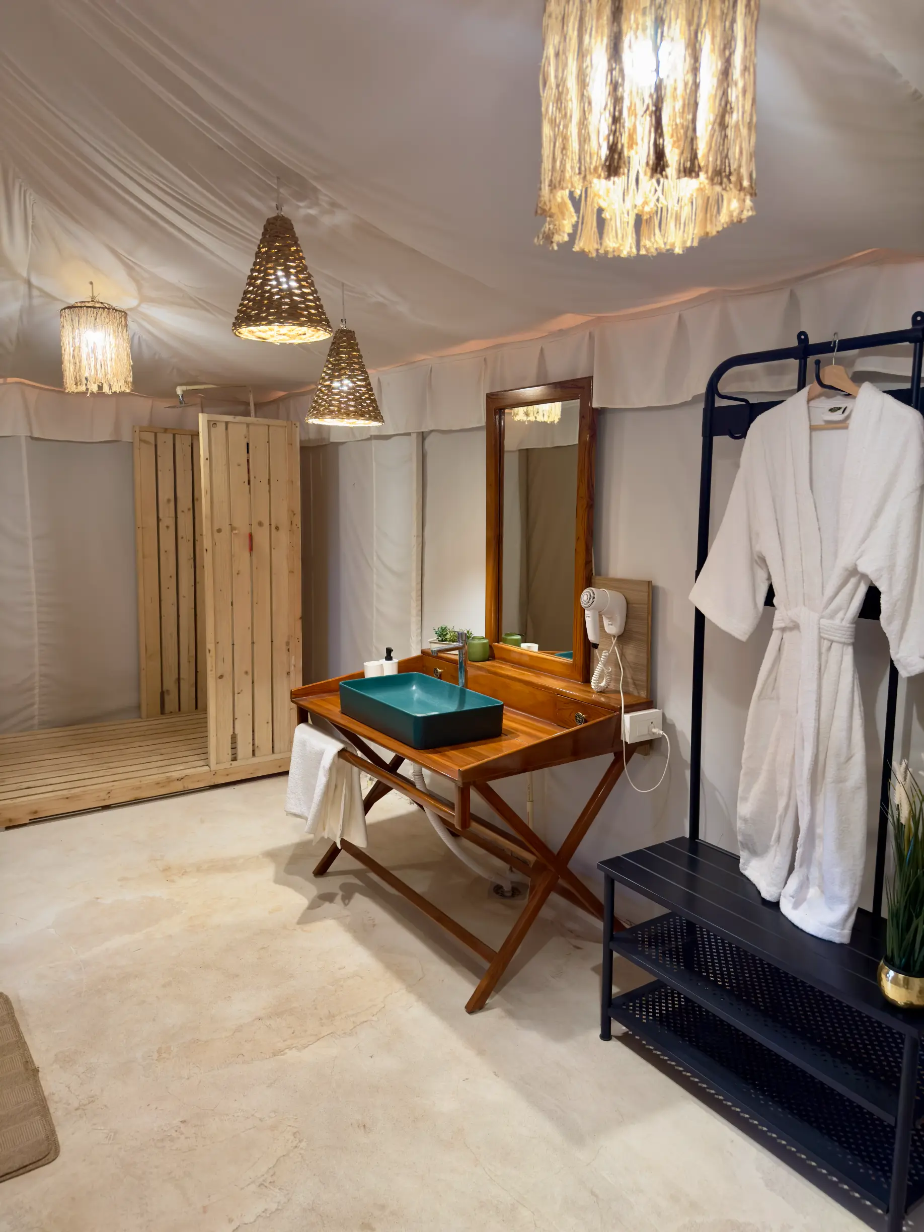 The African Safari Tent is crafted for those who seek both exploration and ease, making every stay an experience that is both adventurous and indulgent.